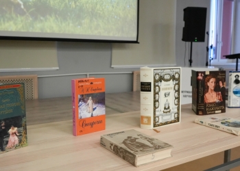 Специально для школьников была подготовлена небольшая выставка произведений русской художественной литературы, среди которых «Алые паруса» Александра Грина, «Евгений Онегин» Александра Пушкина, «Дикая собака Динго, или Повесть о первой любви» Рувима Фраермана.