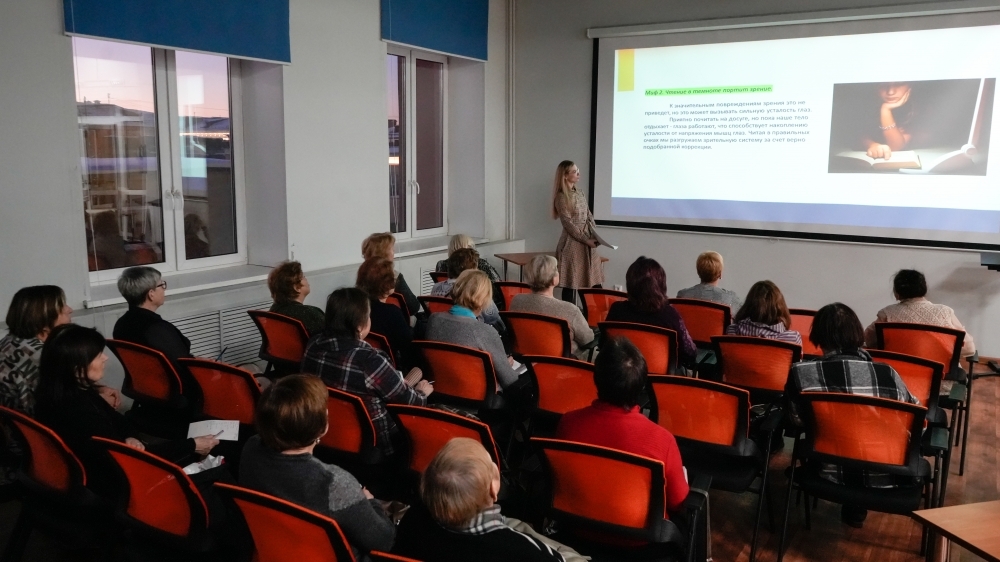 27 ноября в клубе состоялась беседа «Ясное зрение: ключ к здоровой жизни взрослого человека». Старший оптометрист оптики «Счастливый взгляд» Софья Волкова рассказала о влиянии зрения на все сферы здоровья, о возможных возрастных изменениях. Специалист дала рекомендации, как сохранить зрение на долгие годы, ведь это красота, уверенность и основа полноценной жизни.