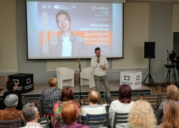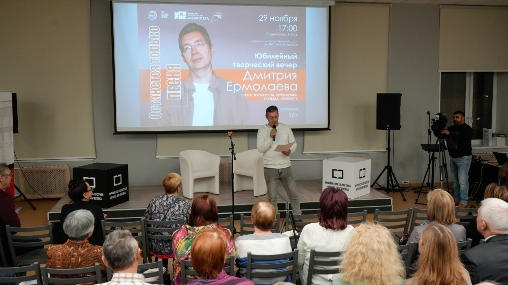 На встрече прозвучал отрывок из иммерсивного спектакля, созданного по сценарию Дмитрия Ермолаева и посвященного мурманскому кино, отрывок из фантастического произведения «Выживший» прочитала актриса Мурманского областного театра кукол Татьяна Смирнова, песню на стихи юбиляра исполнила Елена Фомина.
