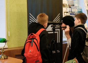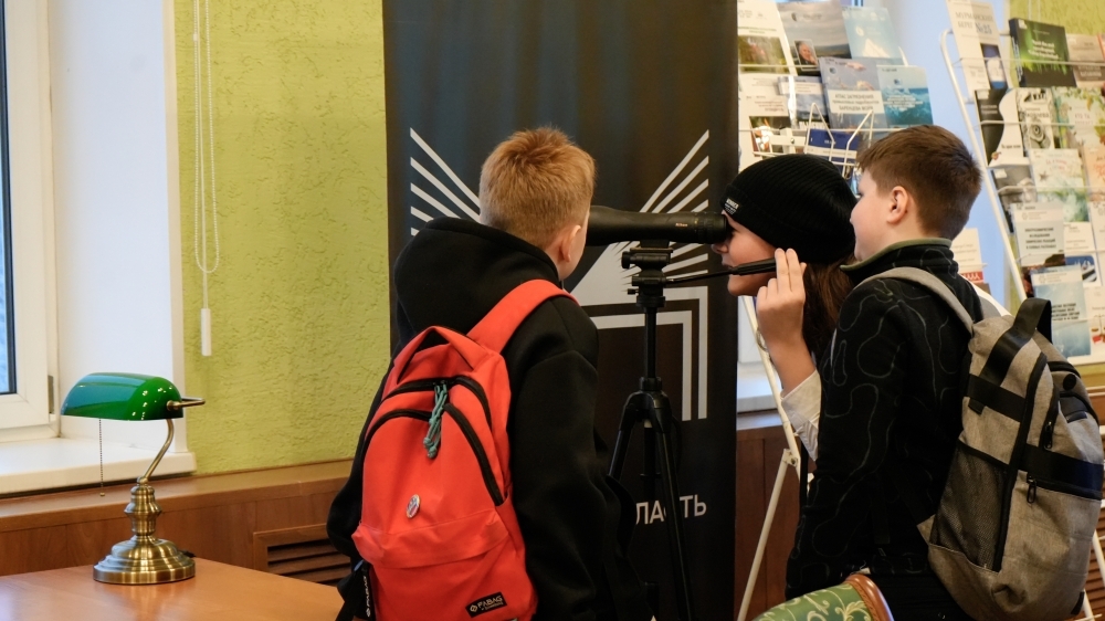 В завершение экскурсии школьники с интересом рассматривали в подзорную трубу с высоты четвертого этажа библиотеки мемориальный комплекс «Маяк».