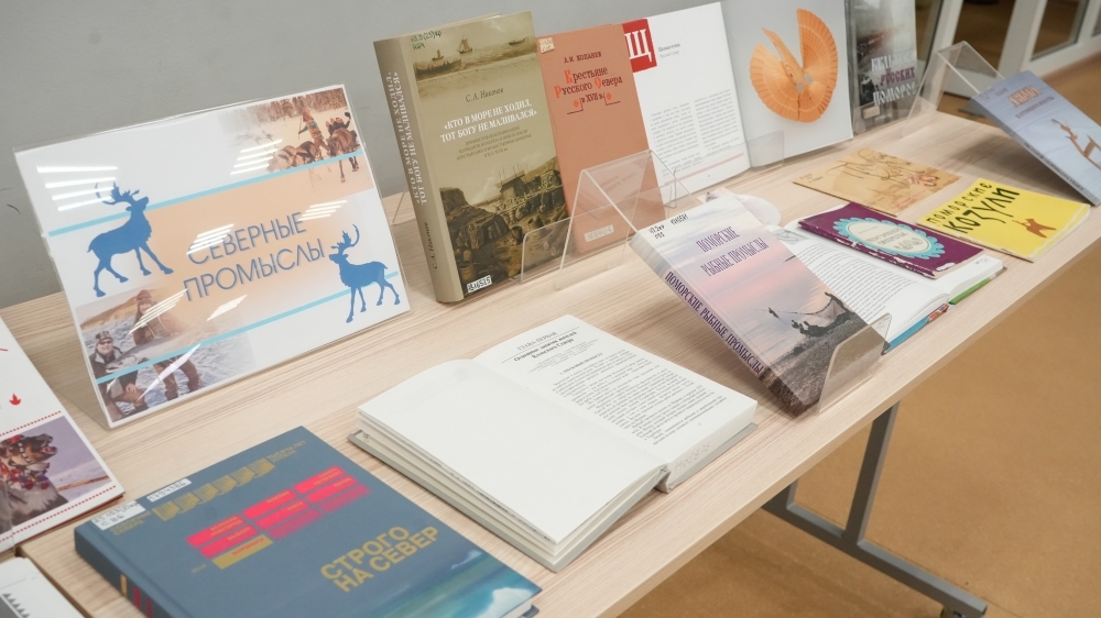 Все присутствующие познакомились с изданиями из фонда библиотеки на книжной выставке «Северные промыслы».