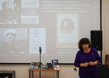 25 января состоялась открытая лекция кандидата филологических наук Марины Валентиновны Наумлюк «Мурманск времен революции и Гражданской войны в романах участников событий Никиты Хаджибейского, Сергея Колбасьева, Александра Гефтера».