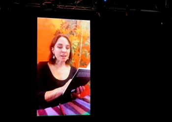 В первой части вечера гости познакомились с автором проекта – членом Союза писателей России Еленой Натальченко, пишущей под псевдонимом Елена Альмалибре. Зрители увидели артистичное видеовыступление от автора альманаха из Коста-Рики – Альваро Мата Гийе, который прочел стихотворение «Осип» на испанском языке. Стихотворение посвящено Осипу Мандельштаму, и является размышлением о смерти поэта.