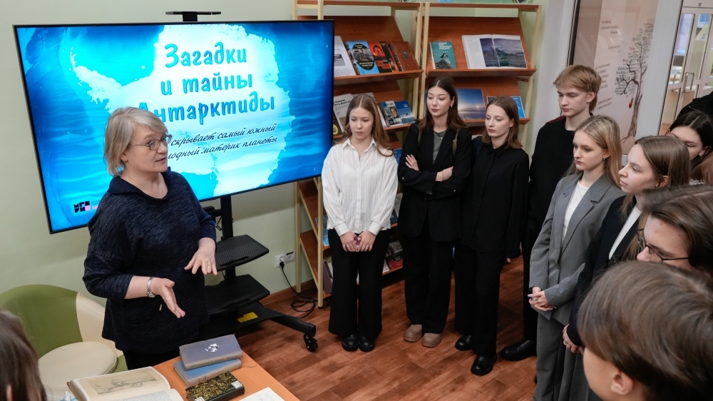 Участники познавательной программы «Есть такая земля – Антарктида!» узнали о природе Антарктики, первопроходцах, покоривших Южный континент, морских охраняемых районах. На экскурсии по книжной выставке «Антарктида – земля Южного Креста» были представлены издания об истории открытия неведомой ранее земли, ее освоении и изучении. Молодежь познакомилась с редкими книгами XIX – начала XX века из фонда библиотеки, посвященными открытию и исследованию Антарктиды. Прозвучали имена выдающегося ученого Михаила Васильевича Ломоносова, мореплавателей и первооткрывателей Антарктиды Фаддея Фаддеевича Беллинсгаузена и Михаила Петровича Лазарева, французского путешественника и океанографа Жюля Дюмон-Дюрвиля. Учащиеся увидели книги руководителей экспедиций «героического века антарктических исследований» Роберта Скотта, Эрнеста Шеклтона, Руаля Амундсена, полярного авиатора Ричарда Бэрда. Эти раритеты, выпущенные в 1930-е годы издательством Главсевморпути в знаменитой серии «Полярная библиотека», ранее принадлежали известному полярнику Арефу Ивановичу Минееву. Викторина «Загадки и тайны Антарктиды» позволила участникам не только проверить свои знания, но и познакомиться с удивительным миром Антарктиды, открыть ее тайны и загадки.