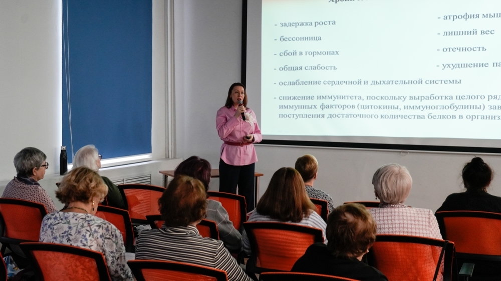 25 февраля нутрициолог Мария Василькова провела в клубе «Старшие» лекцию «Белок в рационе питания: почему он так важен и сколько его есть». Мария рассказала, что белок – незаменимый компонент рациона, выполняющий множество функций в организме. Он участвует в построении клеток, синтезе гормонов, ферментов и антител, поддерживает работу иммунной системы. Белки состоят из аминокислот – «строительных блоков» для всех тканей и органов. Всего существует 20 аминокислот, из которых 8 являются незаменимыми, то есть организм не может их синтезировать самостоятельно. Эти аминокислоты должны поступать с пищей: триптофан, лизин, валин, лейцин, изолейцин, фенилаланин, метионин и треонин. Итогом лекции стал вывод участников о том, что белок необходим организму ежедневно, поэтому важно следить за разнообразием рациона. Сочетание животных и растительных источников белка обеспечивает поступление всех необходимых аминокислот, улучшает иммунитет, пищеварение, здоровье кожи и волос, снижает риск сердечно-сосудистых заболеваний.