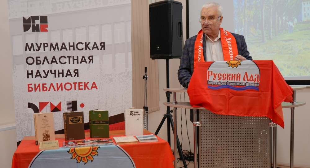 6 марта состоялся литературно-музыкальный вечер «Как слово наше отзовется…»: к юбилеям русских писателей Всеволода Гаршина и Федора Абрамова. В начале мероприятия с приветственным словом к аудитории обратился председатель ВСД «Русский Лад» в Мурманске Михаил Васильевич Антропов.
