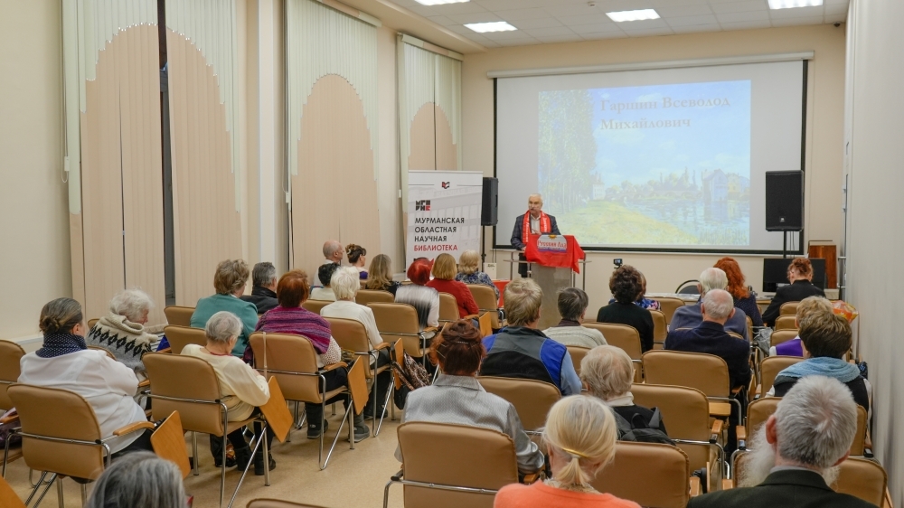 Специалист Мурманской областной научной библиотеки Любовь Кочергина подготовила презентацию о жизни и творчестве писателей Всеволода Гаршина и Федора Абрамова. Алина Александровна Малышкина рассказала о малоизвестных биографических фактах, прочла отрывки из произведений.