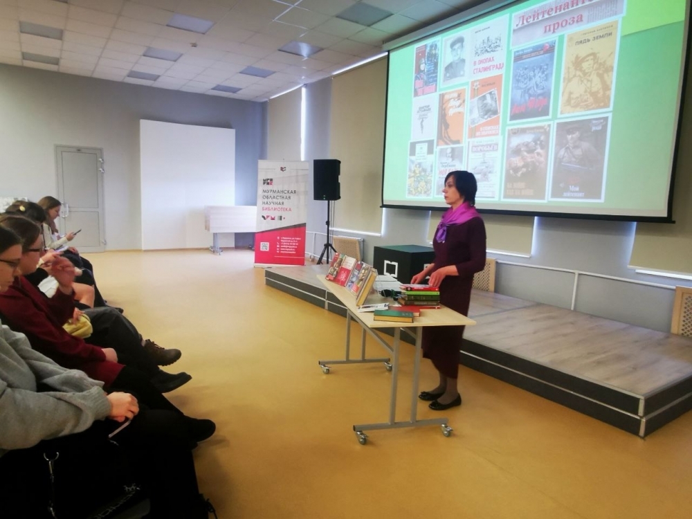 6 марта в Мурманской областной научной библиотеке состоялась лекция «Лучшие книги о Великой Отечественной войне: голоса лейтенантской прозы». Лектором выступила специалист библиотеки Татьяна Иванова. Слушателями стали студенты Мурманского педагогического колледжа и Мурманского строительного колледжа.