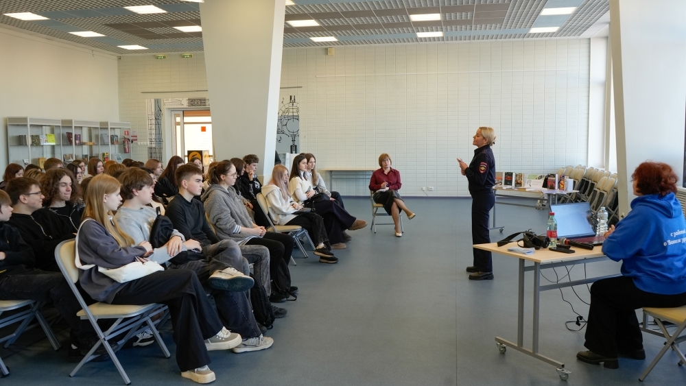 11 марта в Мурманской областной научной библиотеке учащиеся колледжа МАУ встретились с Оксаной Коломиец – младшим лейтенантом полиции, оперуполномоченным Управления по контролю за оборотом наркотиков УМВД России по Мурманской области.