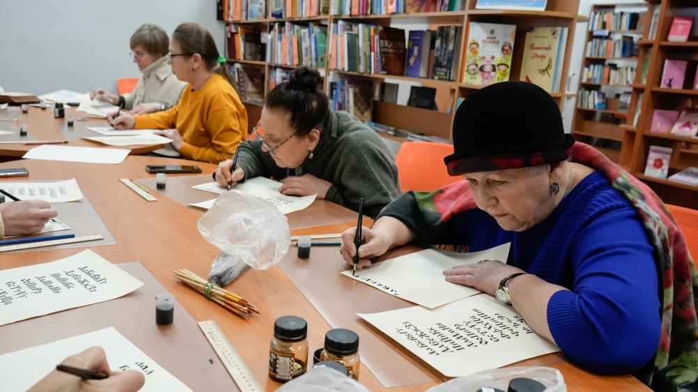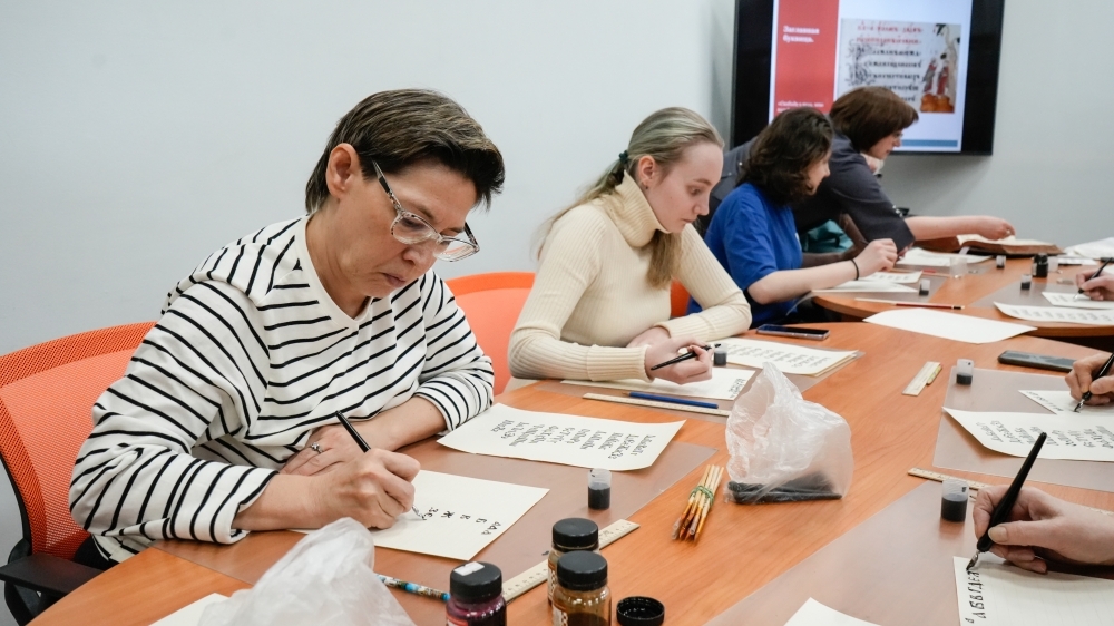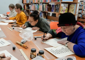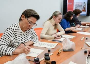 Мастер-класс «Шрифты православной книги» дал представление о красоте письма прошлого времени – «полууставе», который использовался для переписки текстов православных книг. Участники научились писать пером и тушью, выводя буквы и слова, используя шрифт второй половины XIV века.
