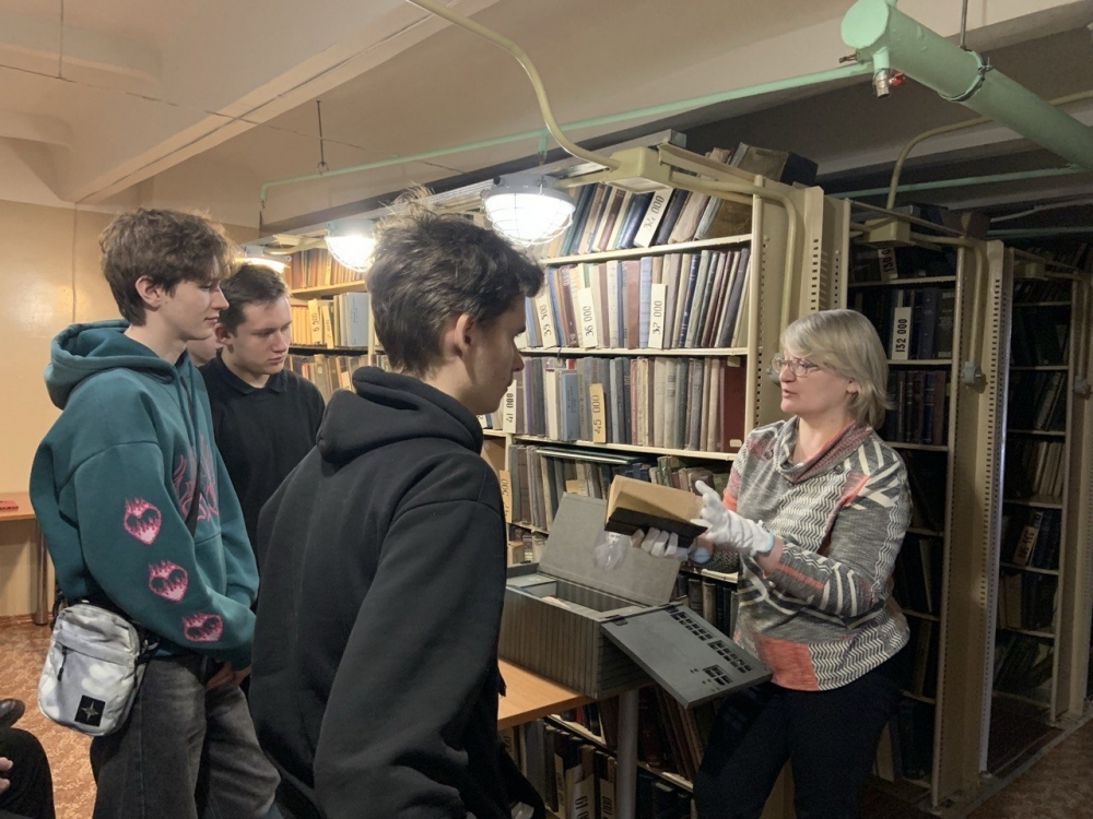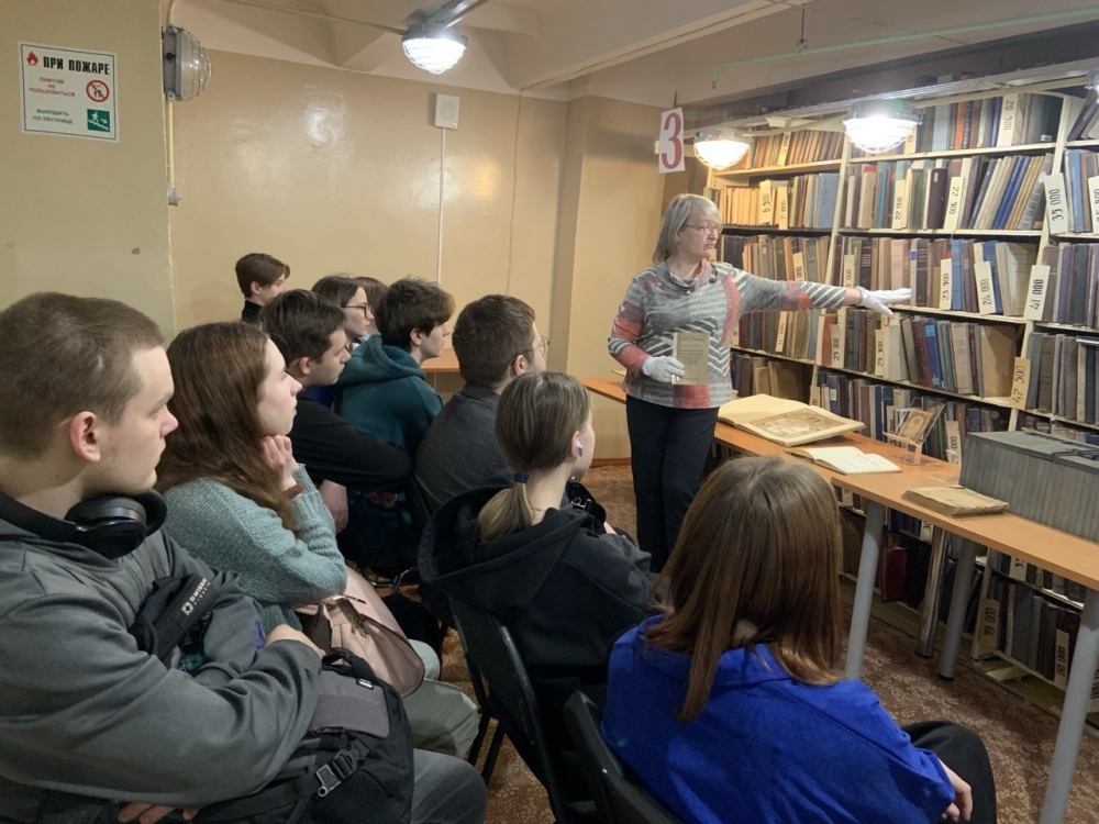 В ходе экскурсии по книгохранению библиотеки «Духовное наследие веков» были представлены факсимильные воспроизведения «Остромирова Евангелия», древнейшей датированной рукописной книги середины XI века, и «Евангелия» («Нового Завета») 1823 года – личного экземпляра Федора Михайловича Достоевского, подаренного писателю по дороге в Омский острог. Большой интерес вызвала книга «Год на Севере» С. В. Максимова 1859 года, на страницах которой приведена легенда о мастере-строителе Воскресенского собора в Коле. Участники экскурсии перелистали страницы рождественских и пасхальных номеров известных иллюстрированных журналов начала XX века «Нива» и «Задушевное слово» для семейного чтения.