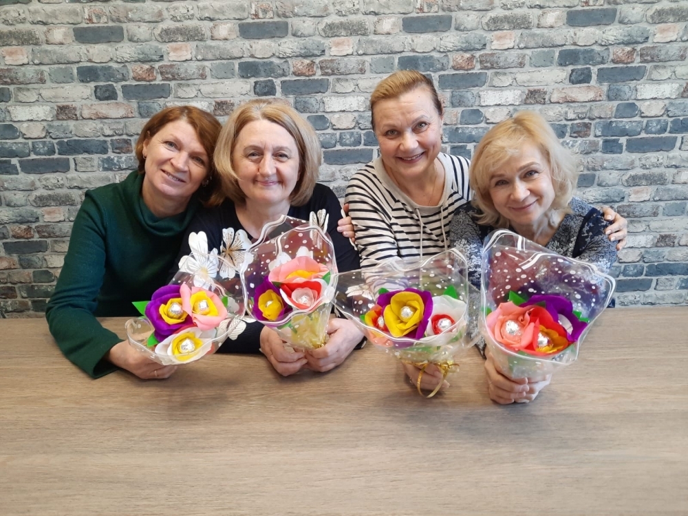 13 марта участница клуба «Старшие» Светлана Асташенкова провела мастер-класс для желающих «Подарок на все времена». Участники учились делать букет из бумаги и конфет. Светлана Тимофеевна подробно продемонстрировала этапы создания букета. Результат получился по-весеннему яркий.