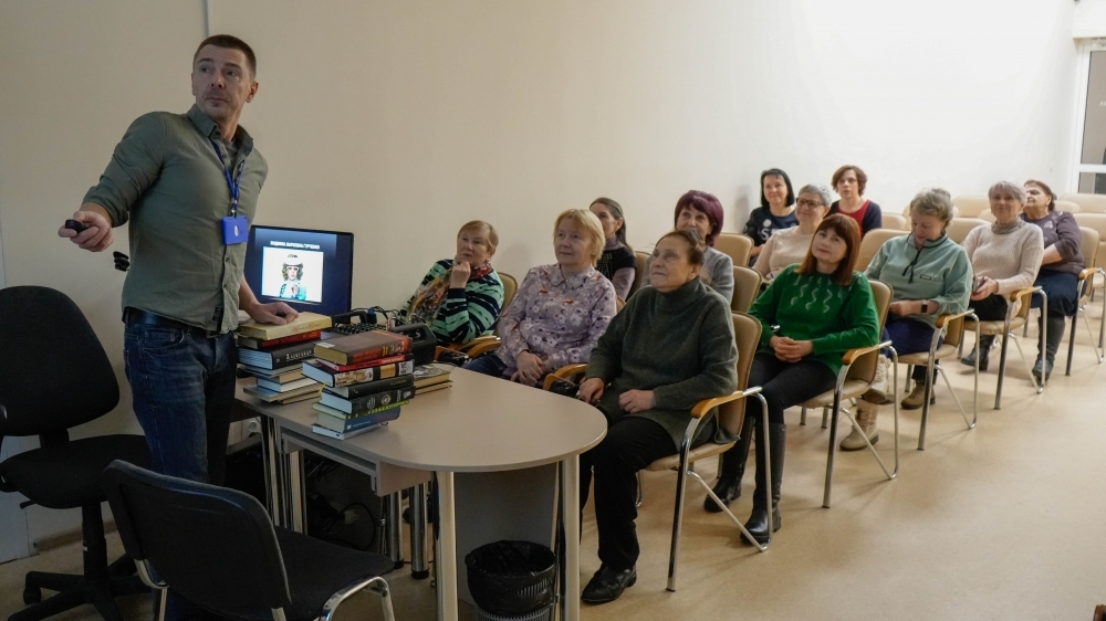 20 марта для участников клуба была проведена познавательная программа к Всемирному дню поэзии «Поэты и поэзия: строки и кадры». Специалист библиотеки Александр Вальков подготовил викторину по теме. Присутствующие отвечали на вопросы, связанные с поэтами и поэзией в кино: о поэтах, которые выступали в качестве актеров, о стихах, прозвучавших в известных отечественных фильмах, об авторах слов узнаваемых музыкальных композиций, об экранизациях российской и советской классики. Все ответы на вопросы сопровождались демонстрацией книг из фонда библиотеки. Наиболее активные участники были награждены ценными призами. После увлекательной викторины «Старшие» посмотрели видеолекцию «Есенин в диалоге культур» из коллекции Президентской библиотеки имени Б. Н. Ельцина. Благодаря материалам видеолектория участники глубоко погрузились в творчество Сергея Есенина и по окончании просмотра обсудили факты биографии поэта.
