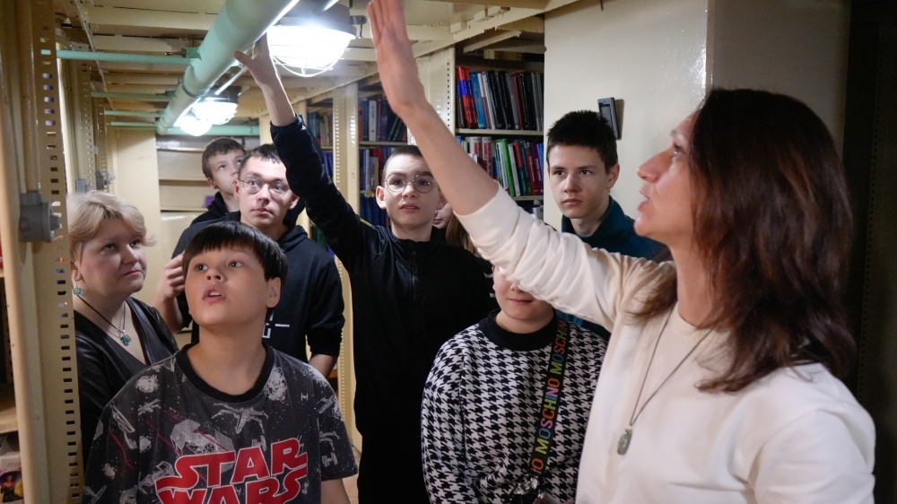 Ребята узнали об особенностях работы учреждения, побывали в отделе комплектования и обработки фондов, отделе развития и внешних коммуникаций. Особенно интересно было побывать в отделе веб-технологий в кабинете сканирования и увидеть планетарный сканер «ЭЛАР ПланСкан А2B», резак и пресс для книг. Экскурсанты узнали о работе отдела библиотечного обслуживания, посмотрели станцию самообслуживания для читателей, а также побывали в книгохранении МГОУНБ.