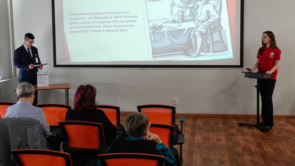 18 апреля прошла лекция «Донорское движение во времена Великой Отечественной Войны». Лектором выступила волонтер-медик Ангелина Токарева. Слушатели узнали, что в годы войны донорами стали 5,5 миллионов человек, из которых 90% составляли женщины. В годы войны на фронт было переправлено 1 миллион 700 тысяч литров донорской крови. Как самый срочный и важный груз доставлялись на фронт ампулы с кровью. Патриотическое движение доноров дало возможность создать в стране сеть институтов и станций переливания крови, сохранило сотни тысяч жизней воинов, способствовало быстрейшему возвращению их в строй защитников Родины. Это был массовый подвиг. Лектор рассказала несколько реальных историй о донорах, которые стали героями Великой Отечественной войны.