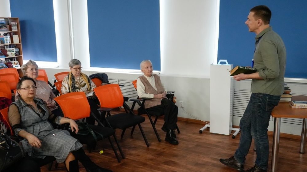 17 апреля для участников клуба «Старшие» была проведена познавательная программа «История, кино, литература» из цикла «Узнать новое, вспомнить забытое». Специалист библиотеки Александр Вальков подготовил викторину по историческим книгам и фильмам. Присутствующие отвечали на вопросы, связанные с историческими событиями, описанными в книгах и перенесенными на экран: о писателях, которые выступали в качестве актеров, о знаковых событиях прошлого, об узнаваемых словах, прозвучавших в известных отечественных фильмах, об экранизациях российской и советской классики. Все ответы на вопросы сопровождались демонстрацией книг из фонда библиотеки. После увлекательной викторины участники посмотрели фильм «Факт и образ: история в произведениях русской художественной литературы XVIII-XX вв.» из коллекции Президентской библиотеки имени Б. Н. Ельцина. Фильм рассказывает о выставке, посвященной историческим событиям и персонажам в отечественной литературе. Ее подготовили сотрудники Президентской библиотеки им. Б.Н. Ельцина. Среди экспонатов – оригинальные и оцифрованные литературные произведения, копии архивных документов, научные труды, иллюстрации, эскизы костюмов к театральным постановкам по сочинениям Ивана Тургенева и Михаила Булгакова.