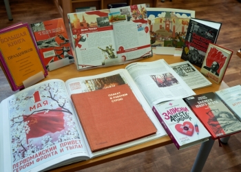 Выставка изданий «Здравствуй, Первомай!» представила издания об истории, становлении и развитии праздника 1 Мая и о героях разных профессий в художественной литературе.