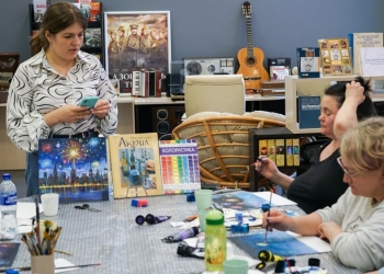 С помощью ярких акриловых красок получилось создать настоящее произведение искусства. Участники нарисовали торжественный праздничный салют и получили уникальный опыт работы с акрилом, освоили различные приемы рисования на холсте. Вместе с Анастасией Худяковой, сотрудником отдела информации по культуре и искусству, они прошли по всем этапам создания уникального изделия, научились новому и создали своими руками прекрасную картину.