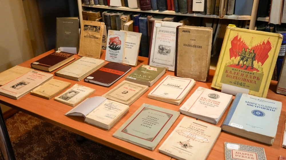 Участники мероприятия узнали, кому ранее принадлежали экземпляры книг «Русские люди» Константина Симонова (1942) и «Хождение по мукам» Алексея Толстого (1943), увидели первый том «Крымской войны» историка Евгения Тарле (1941) и иллюстрированный альбом «Ленинград» (1943), вышедшие в блокадном Ленинграде.