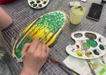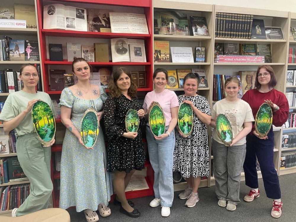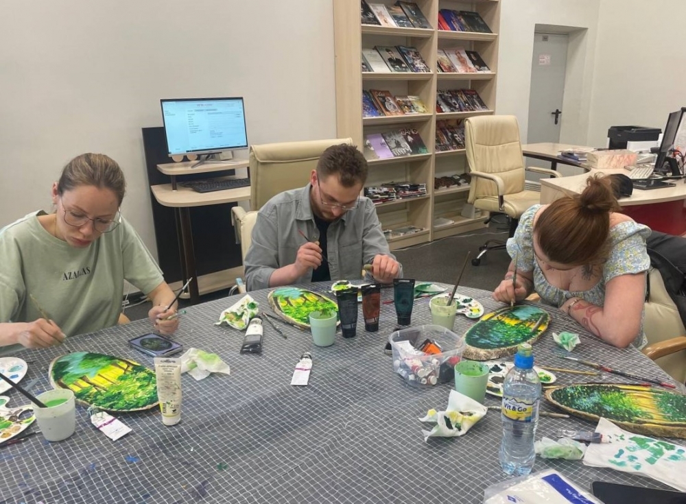 С помощью ярких акриловых красок получилось создать настоящее произведение искусства. Участники нарисовали солнечный лесной пейзаж и получили уникальный опыт работы с акрилом, освоили различные приемы рисования на спиле березы. Вместе с Анастасией Худяковой, сотрудником отдела информации по культуре и искусству, они прошли по всем этапам создания уникального изделия, научились новому и создали своими руками прекрасную подставку под горячее.