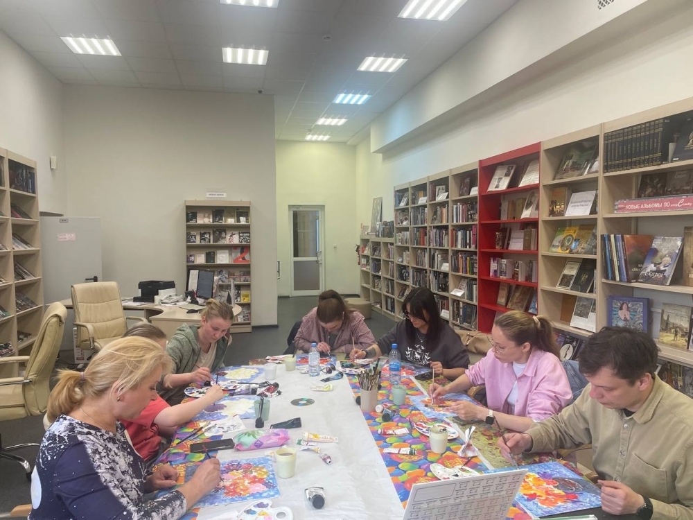 С помощью ярких акриловых красок получилось создать настоящее произведение искусства. Участники нарисовали яркий летний натюрморт и получили уникальный опыт работы с акрилом, освоили различные приемы рисования по мотивам работ художника Л. Афремова. Вместе с Анастасией Худяковой, сотрудником отдела информации по культуре и искусству, они прошли по всем этапам создания уникального изделия, научились новому и создали своими руками прекрасную картину.