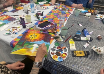 С помощью ярких акриловых красок получилось создать настоящее произведение искусства. Участники нарисовали яркий осенний пейзаж и получили уникальный опыт работы с акрилом, освоили различные приемы рисования по мотивам работ художника Л. Афремова. Вместе с Анастасией Худяковой, сотрудником отдела информации по культуре и искусству, они прошли по всем этапам создания уникального изделия, научились новому и создали своими руками прекрасную картину.