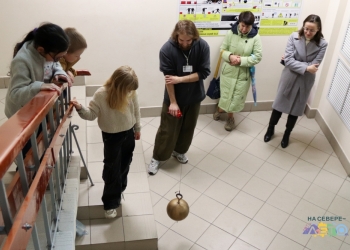 Продолжилось путешествие познавательным шоу «Фукотайм»: с помощью маятника Фуко дети доказали, что наша планета вращается вокруг собственной оси. Желающие смогли запустить его самостоятельно.