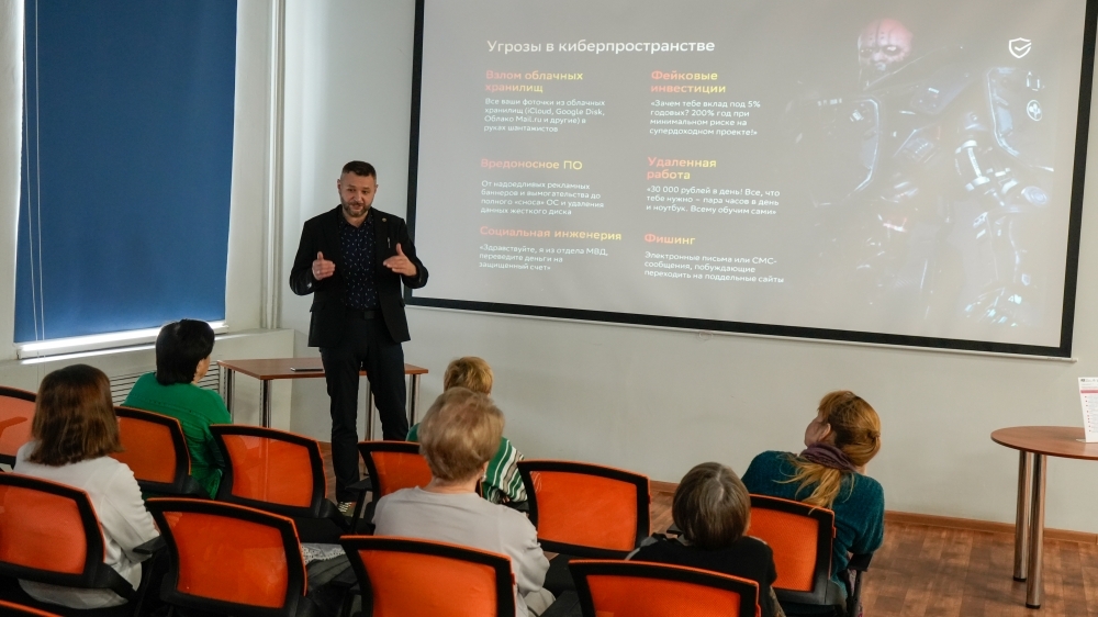 9 июля «Старшие» стали слушателями лекции «Кибербезопасность: поиск позитивных смыслов в цифровом пространстве». Представитель Мурманского отделения ПАО «Сбербанк» менеджер Марат Махмутов рассказал о безопасности в соцсетях с помощью защиты персональных данных от мошеннических действий. Лектор на примерах из жизни показал важность надежных паролей, объяснил, как их правильно создавать, и закрепил знания показом презентации по цифровой гигиене и кибербезопасности. Лекция прошла в живой атмосфере, все присутствующие были вовлечены в диалог, задавали вопросы, на которые получали развернутые ответы. Слушатели узнали не только о том, как защититься от мошенничества, но и как использовать возможности цифрового мира для своего развития.