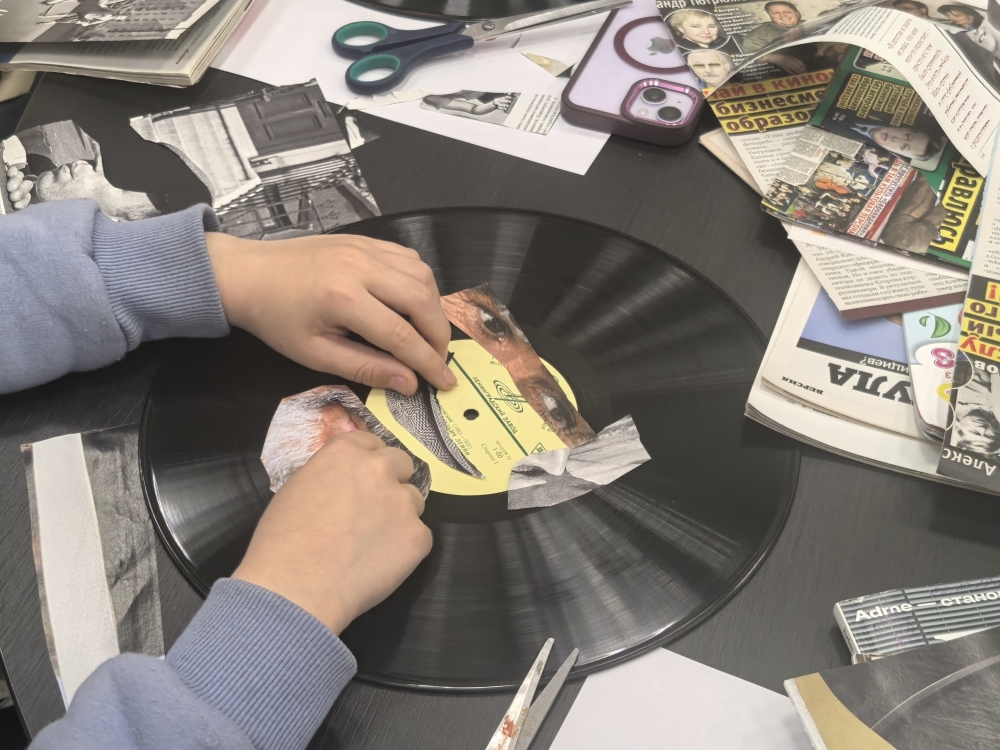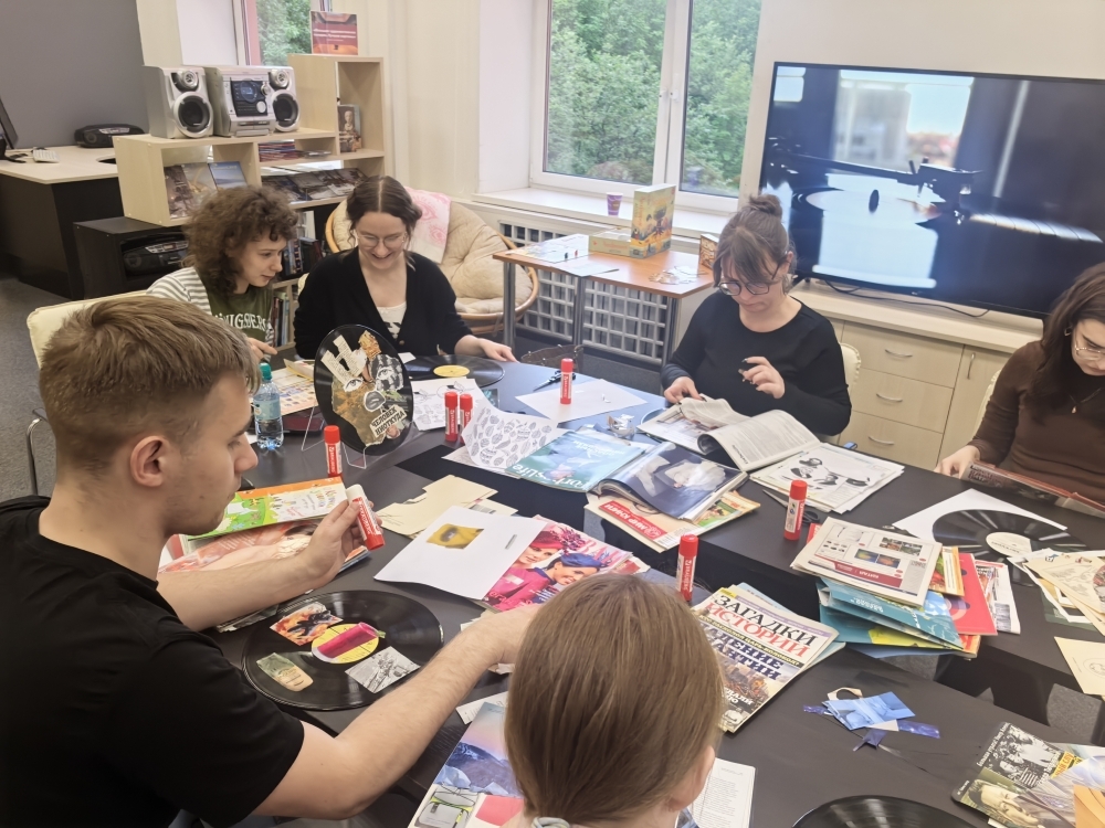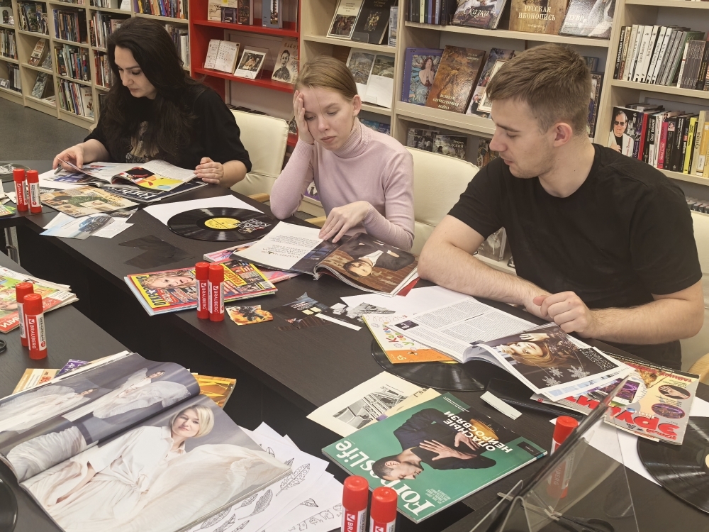 С помощью ярких журнальных вырезок получилось создать настоящее произведение современного искусства. Участники получили уникальный опыт работы с винилом, освоили различные приемы в технике коллаж. Вместе с Юлией Шоховой, сотрудником отдела информации по культуре и искусству, они прошли по всем этапам создания уникального произведения искусства, научились новому и создали своими руками прекрасную работу.
