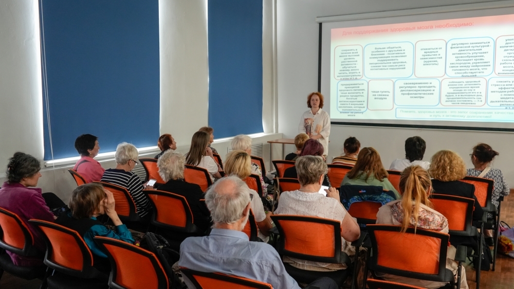 25 июля в клубе «Старшие» прошла лекция «Сохранение здоровья головного мозга». Ни для кого не секрет, что головной мозг является главным органом центральной нервной системы человека. Именно он руководит работой всего организма, и любой сбой моментально сказывается на жизнедеятельности. Об особенностях заболеваний головного мозга, причинах и эффективных мерах профилактики этих недугов рассказала Дарья Лапина, специалист Мурманского областного медицинского центра.