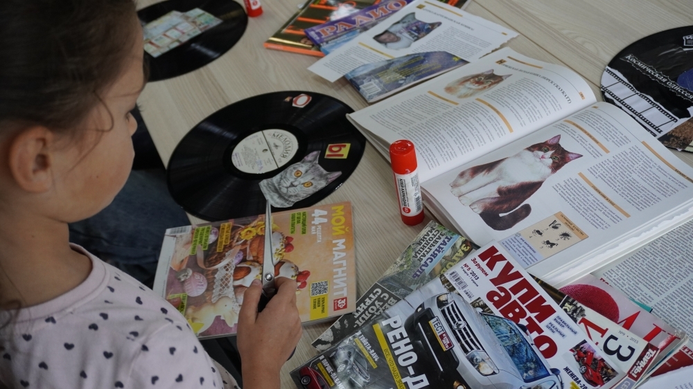 С помощью ярких журнальных вырезок гости Центра создали настоящие произведения искусства. Участники получили уникальный опыт работы с винилом, освоили различные приемы в технике коллаж.