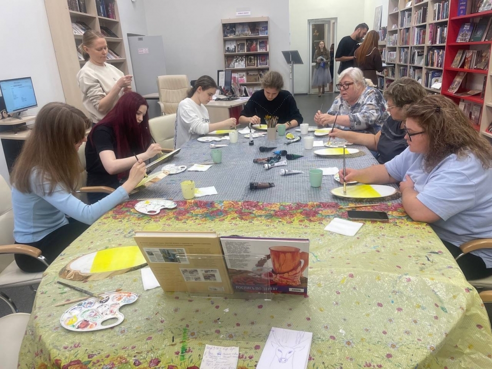 С помощью ярких акриловых красок получилось создать настоящее произведение искусства. Участники нарисовали солнечный лесной пейзаж и получили уникальный опыт работы с акрилом, освоили различные приемы рисования на спиле березы. Вместе с Анастасией Худяковой, сотрудником отдела информации по культуре и искусству, они прошли по всем этапам создания уникального изделия, научились новому и создали своими руками прекрасную подставку под горячее.