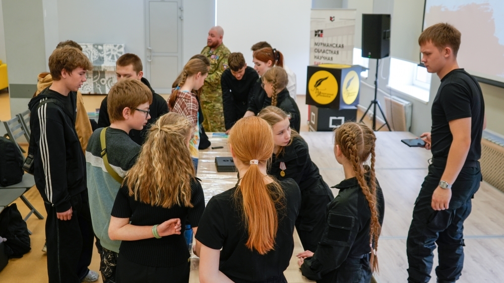 3 октября в Мурманской областной научной библиотеке состоялось третье мероприятие из цикла «Среди СВОих» — «Беседа о важном в Научке». В гости в библиотеку пришли учащиеся Мурманского строительного колледжа, Семейной школы «Галилео» и военно-патриотического клуба «Кобальт». Это мероприятие стало частью масштабной акции «От героев прошлого к героям настоящего», приуроченной к Году Защитника Отечества. Тема встречи была посвящена современному героизму, рассматривая его не только сквозь исторические события, но и через призму специальной военной операции.