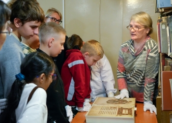 5 октября воспитанники воскресной школы при Свято-Никольском кафедральном соборе г. Мурманска и их родители побывали на экскурсии «Книжные лабиринты Научки». Ребята прошли по ярусам книгохранения, узнали, сколько изданий сегодня хранится в главной библиотеке области, как книги и газеты доставляются читателям из книгохранения в залы обслуживания, что такое форматная расстановка книг, почему в хранении всегда так мало света.