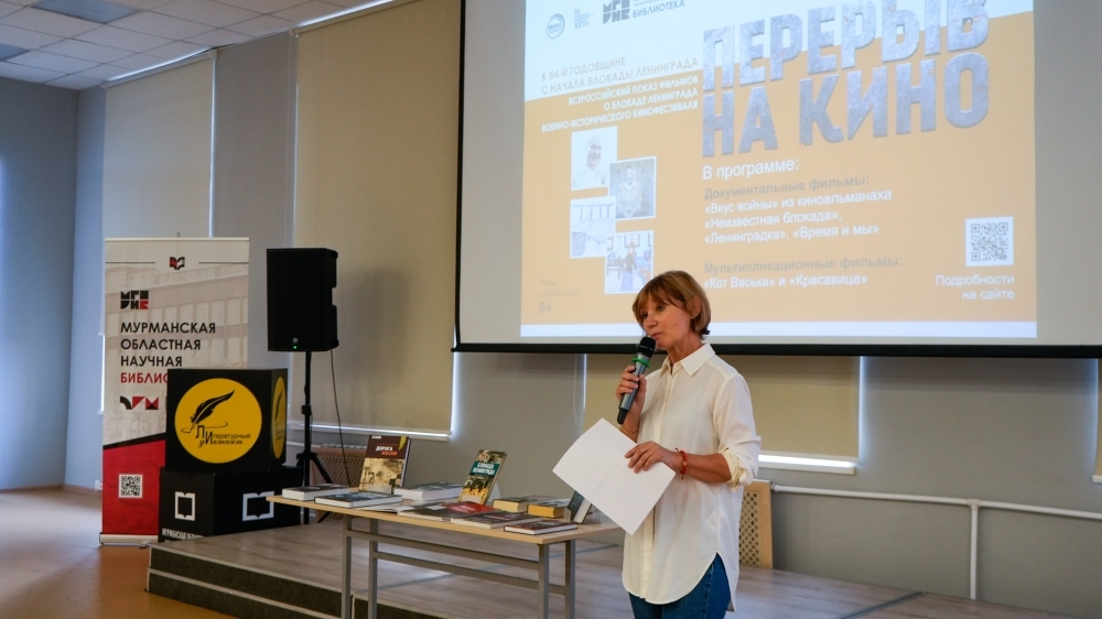 7 октября Мурманская областная научная библиотека стала участницей Всероссийского показа фильмов о блокаде Ленинграда, представленных на военно-историческом кинофестивале «Перерыв на кино». Кинопоказ, организованный Фондом «Мост поколений», приурочен к 84-й годовщине с начала блокады Ленинграда и Международному дню памяти жертв фашизма.