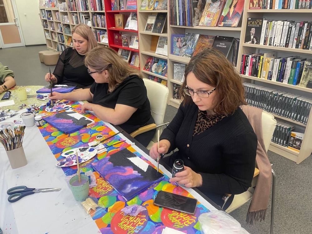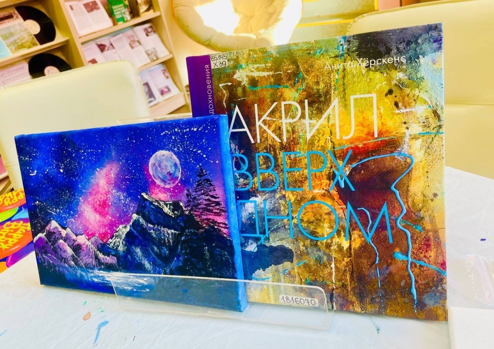 С помощью ярких акриловых красок получилось создать настоящее произведение искусства. Участники нарисовали ночной горный пейзаж и получили уникальный опыт работы с акрилом, освоили различные приемы рисования. Вместе с Анастасией Худяковой, сотрудником отдела информации по культуре и искусству, они прошли все этапы создания уникального изделия, научились новому и создали своими руками прекрасную картину.