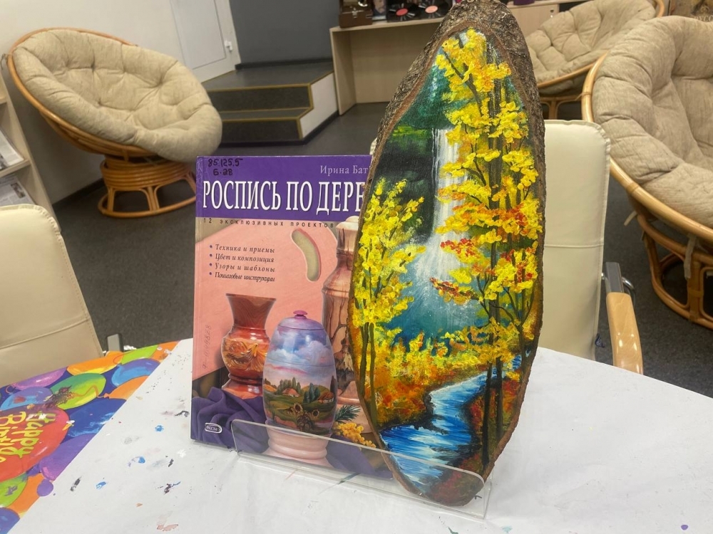 11 октября на мастер-классе «Северный водопад» в зале искусств собрались любители рисования акрилом. Прохладный вечер идеально подошёл для создания необычной работы на спиле осины.