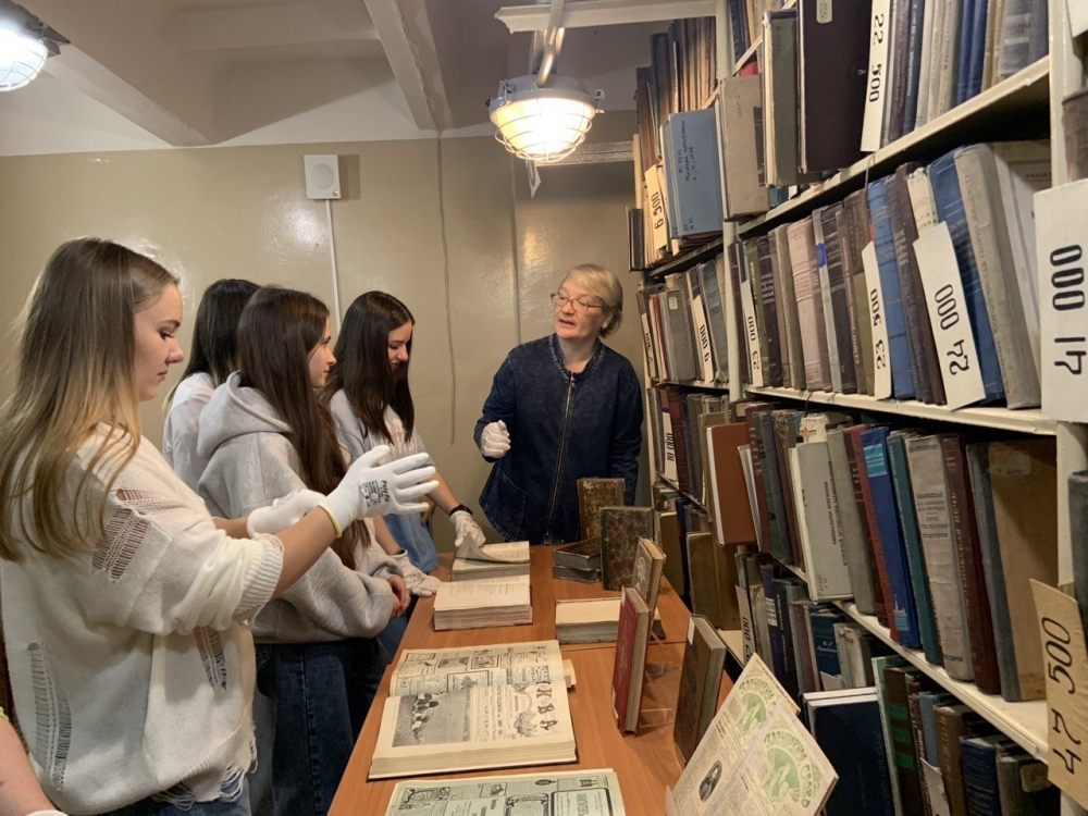 Участники экскурсии-знакомства «Вдохновение из прошлого» узнали о русских периодических изданиях XIX–начала XX века, о том, как и где хранятся газеты и журналы. В ходе экскурсии были представлены старейшие журналы мурманской «Научки» – «Русский вестник» (1808–1811) и «Библиотека для чтения» (1834–1835), сохранившие переплеты и бумажные обложки XIX столетия, журнал «Нива» начала XX века с многочисленными иллюстрациями и увлекательной рекламой. Особый интерес вызвали журналы XIX века, ранее хранившиеся в личных библиотеках членов императорского Дома Романовых.
