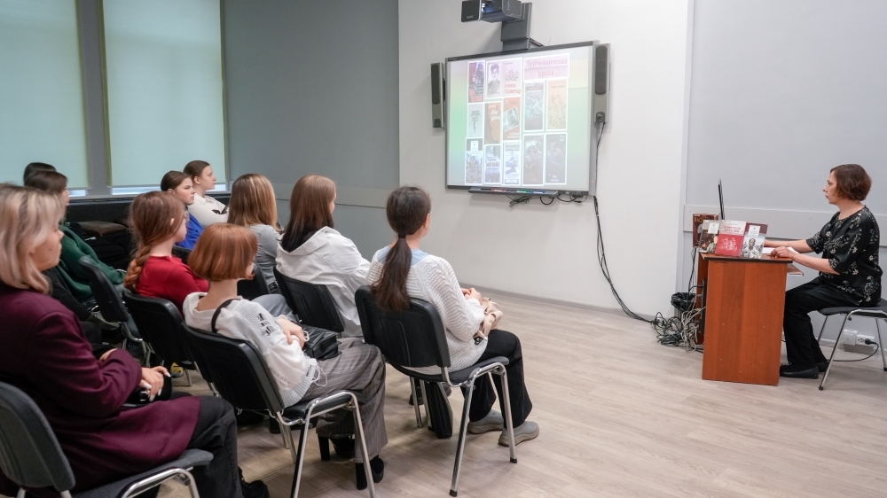 5 ноября 2025 года студенты Мурманского педагогического колледжа стали слушателями лекции «Опаленные войной». Как появился термин «лейтенантская проза»? Какие авторы являются ее представителями? В чем стилистические особенности произведений этого направления и почему их можно отнести к лучшим книгам о Великой Отечественной войне? Об этом рассказала специалист библиотеки Татьяна Иванова. Ребята узнали о Викторе Некрасове, чья повесть «В окопах Сталинграда» стала первым произведением «лейтенантской прозы», подробно поговорили о повестях «На войне как на войне» Виктора Курочкина и «Сашка» Вячеслава Кондратьева. Эти книги – о том, как остаться человеком в экстремальных ситуациях и в любые времена. Студенты узнали о реальных прототипах героев, увидели отрывки из знаменитых экранизаций, услышали поэтические строки о войне представителей того же поколения, чью жизнь опалила война – Булата Окуджавы, Давида Самойлова, Александра Твардовского.