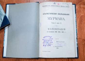 Три редкие краеведческие книги вернулись в фонд мурманской Научки после реставрации. Это издания, напечатанные в конце XIX–начале XX века в Санкт-Петербурге: «Колонизация, ее современное положение и меры для русского заселения Мурмана (продолжение)» Н. А. Шаврова (1898), «Материалы по статистическому исследованию Мурмана. Т. 2, вып. 2» (1903) и «Статистические исследования Мурмана. Т. 1, вып. 2» (1904).