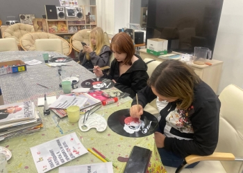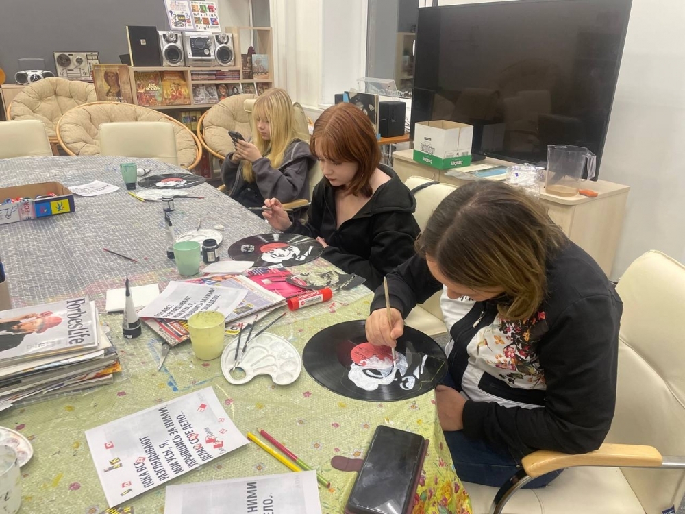15 ноября 2025 года на мастер-классе «Лица кумиров» в областной библиотеке собрались любители рисования акрилом. Прохладный вечер идеально подошёл для создания необычной работы на виниловой пластинке.