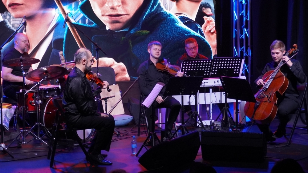 Искусство музыкантов объединило два классических инструмента – скрипки и виолончели, элегантность фортепианного исполнения и ритмы современной ударной установки. Этот неповторимый ансамбль представил зрителям саундтрек-шоу, включившее знаменитые композиции из любимых всеми фильмов: «Гарри Поттер», «Властелин колец», «1+1», «Пираты Карибского моря», «Гладиатор», «Люди в черном».
