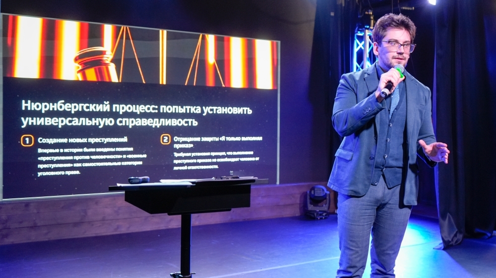 27 ноября Георгий Михайлович Симонишвили, преподаватель Мурманского арктического университета, прочитал лекцию «Нюрнбергский процесс и представления о справедливости». Лектор рассмотрел самые важные и интересные факты суда, объяснил концепцию справедливости и ответственности за преступления против человечности с точки зрения права.