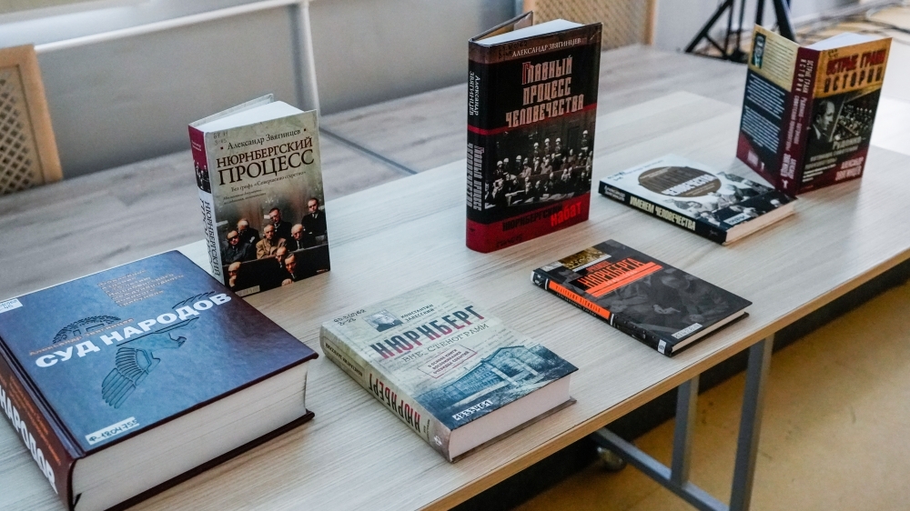 Все желающие смогли познакомиться с выставкой изданий «Нюрнбергский процесс: главный суд XX века». Среди многих документов были представлены труды Александра Звягинцева, который свыше полувека своей жизни посвятил изучению Нюрнбергского трибунала, и книги непосредственных очевидцев процесса: секретаря советской делегации Аркадия Полторака, писателя, корреспондента от газеты «Правда» Бориса Полевого.