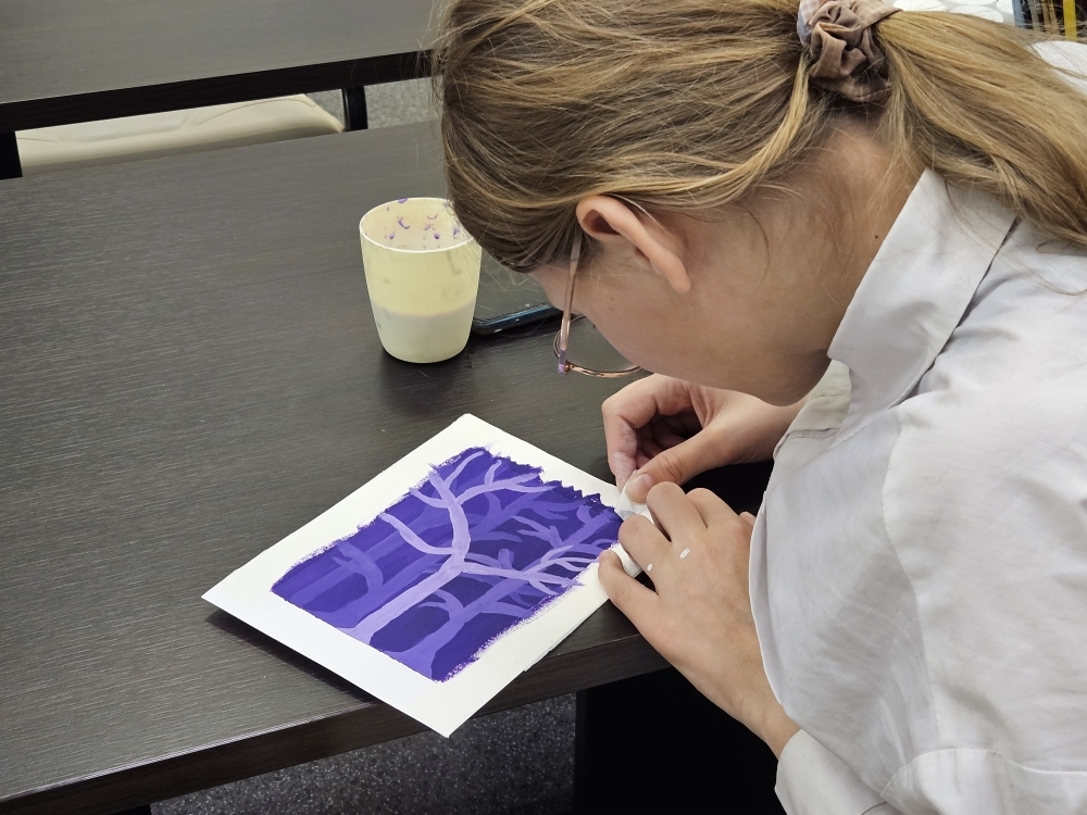 5 декабря 2025 года в зале искусств Научной библиотеки состоялся мастер-класс «Монохромный лес» под руководством специалиста Виктории Яковлевой. Участники мероприятия погрузились в атмосферу загадочной зимней природы и освоили основы живописной техники.