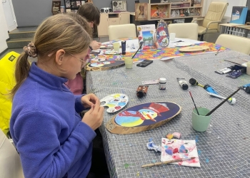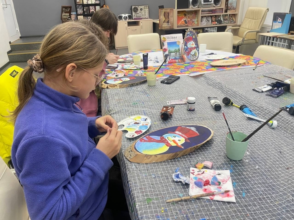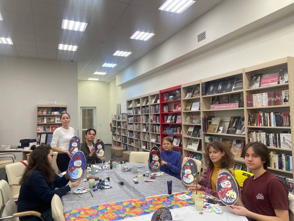 С помощью ярких акриловых красок получилось создать настоящее произведение искусства. Участники нарисовали смешного веселого снеговичка и получили уникальный опыт работы с акрилом, освоили различные приемы рисования. Вместе с Анастасией Худяковой, сотрудником отдела информации по культуре и искусству, они прошли по всем этапам создания уникального изделия.