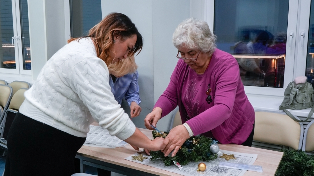 11 декабря, в преддверии волшебного праздника – Нового года, сотрудники Мурманского областного центра повышения квалификации специалистов здравоохранения провели мастер-класс «Новогоднее настроение», наполненный светом, творчеством и радостью. Участники клуба создали атмосферу зимней сказки, украсив свечи – каждый оформил свою свечу в уникальном стиле с помощью блесток, лент и сухоцветов. Свечи стали не просто декором, а символом тепла, уюта и надежды, которые мы зажигаем в сердцах перед праздником. Волшебства добавило творчество по изготовлению новогодних венков из бумаги, картона и фольги. Яркие венки повисли над залом, предвещая удачу и исполнение желаний в новом году. Все с азартом выбирали цвета, формы и узоры, вкладывая частичку души в каждую деталь.