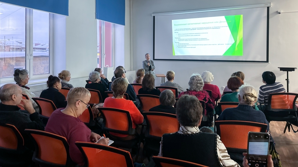 13 декабря в клубе прошла лекция «Забывчивость – норма или патология?» Врач-невролог Мурманской областной клинической больницы им. П. А. Баяндина Светлана Химич объяснила, что забывчивость, возникающая с возрастом – естественный процесс, но при значительных нарушениях памяти важно обратиться к доктору для своевременной диагностики и лечения. Профилактика, включая физическую активность, развитие мозга и здоровое питание, помогает поддерживать память на протяжении всей жизни. В завершение мероприятия специалист провела тест на состояние памяти.