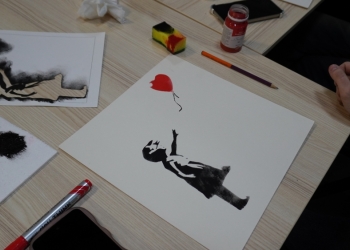 В первой части мастер-класса специалист отдела информации по культуре и искусству Юлия Шохова прочитала лекцию о стрит-арте и самом загадочном художнике из мира современного искусства – Бэнкси. Участники узнали про становление такого направления современного искусства, как стрит-арт, про перформанс с одной из картин Бэнкви на аукционе «Сотбис», попытались раскрыть личность художника и рассуждать о смысле его работ. Далее участники взялись за создание небольшой картины на картонной «стене».