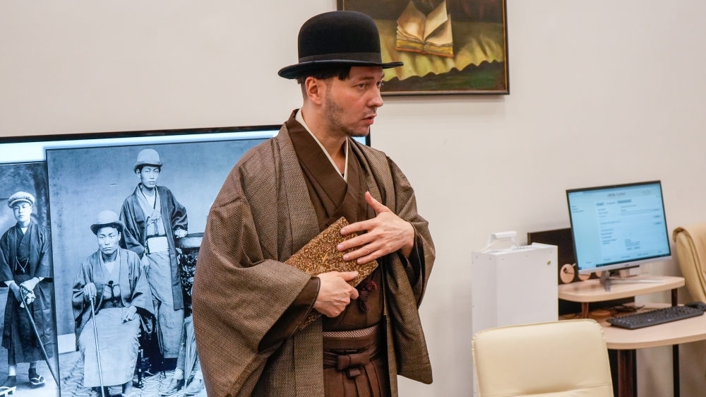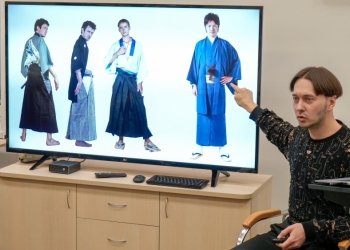 В рамках лекции художники представили вниманию публики редчайшие образцы подлинной японской одежды начала прошлого века. Андрей Скатков продемонстрировал эти исторические артефакты, облачившись в них, что позволило гостям в полной мере ощутить дух эпохи и оценить мастерство японских ремесленников.